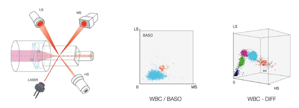 • Благодаря особому методу трехугольного лазерного рассеяния, усовершенствованной проточной цитометрии и химическому красителю, даже в образцах с высокой эозинофильностью, дифференцированный анализ станет точнее.
